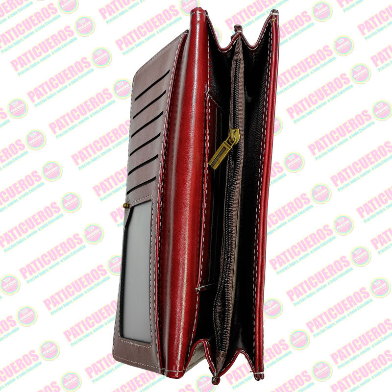 La billetera tiene un total de 15 bolsillos amplios; capaces de albergar todo tipo de billetes, monedas, tarjetas, documentos y casi cualquier celular de la actualidad. Este producto lo tenemos disponible en color rojo o negro para entrega inmediata.